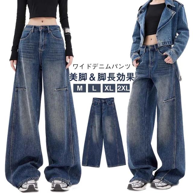 ボトムス パンツ 長ズボン ワイドデニム レディース ワイドデニムパンツ デニム ロング丈 ワイドパンツ ジーンズ ハイウエスト ゆったり ワイドデニムパンツ 30代 20代 春 秋