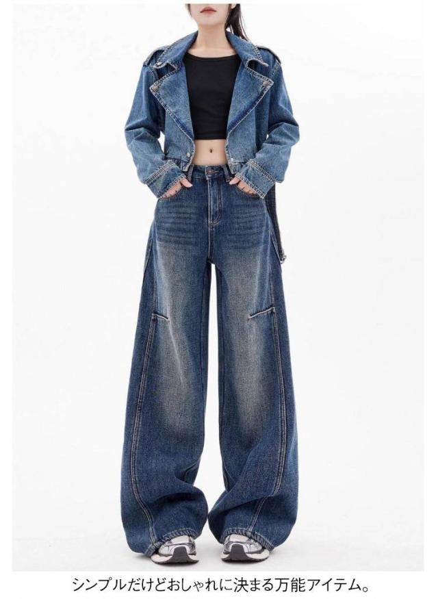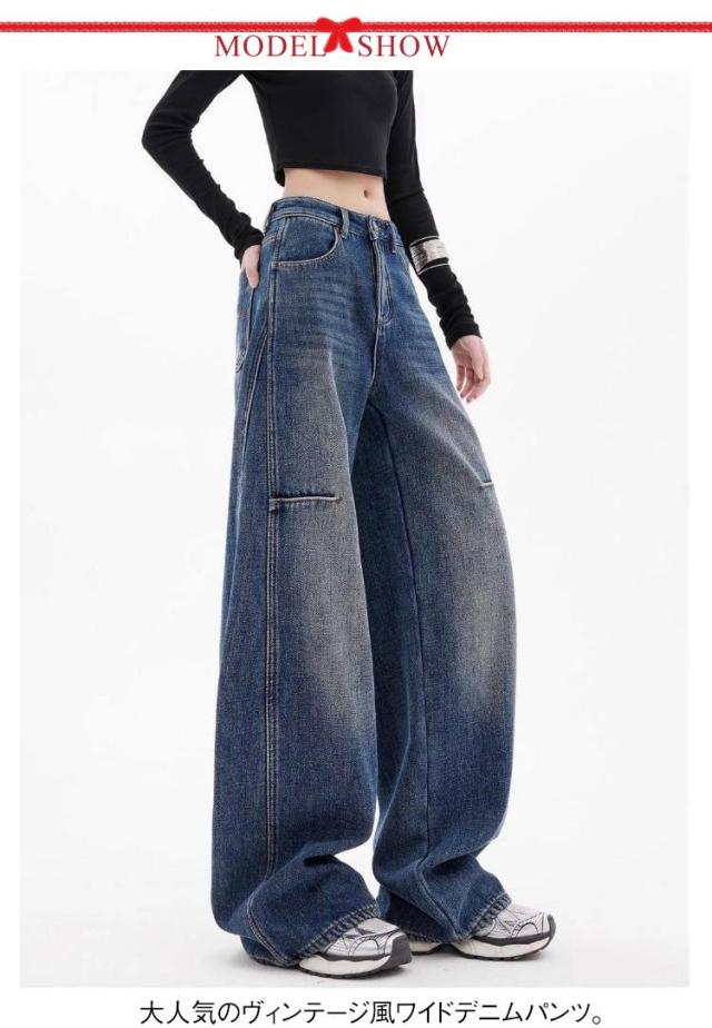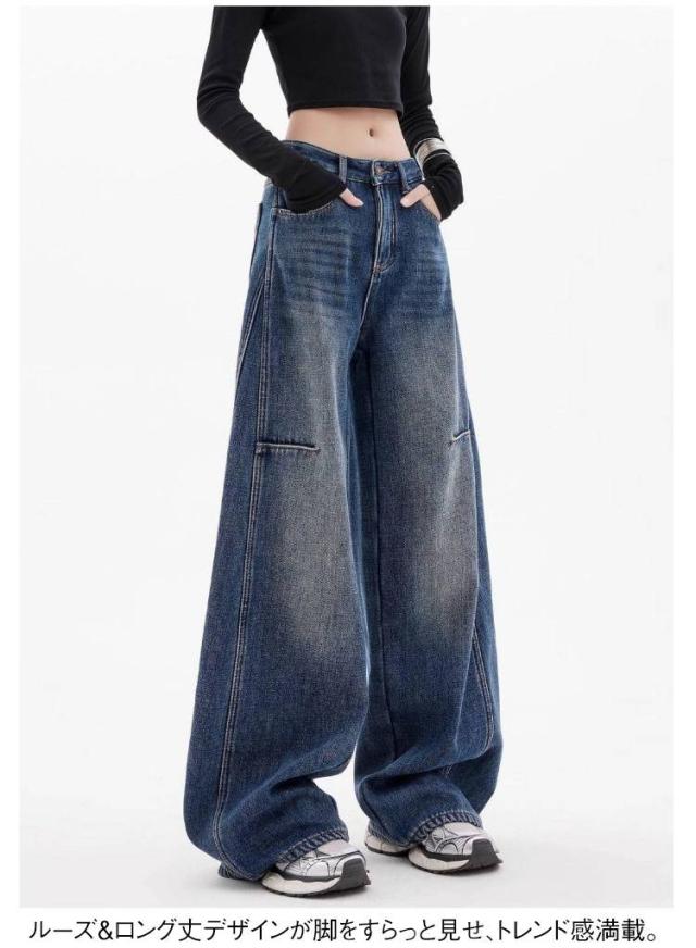 | 大人気のヴィンテージ風ワイドデニムパンツ。 ルーズ&ロング丈デザインが脚をすらっと見せ、トレンド感満載。 快適なデニム生地で通気性&柔らかさ抜群!春秋にぴったり。 Tシャツ、シャツ、パーカーとも簡単コーデ! シンプルだけどおしゃれに決まる万能アイテム。 | |