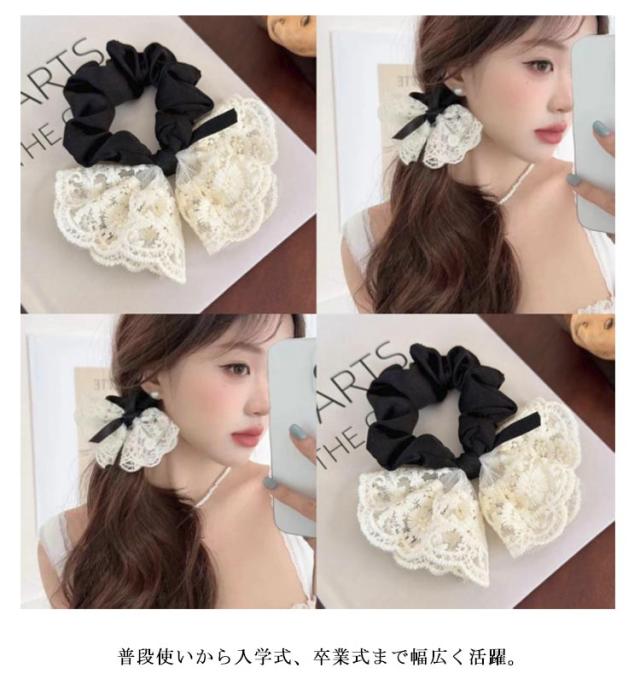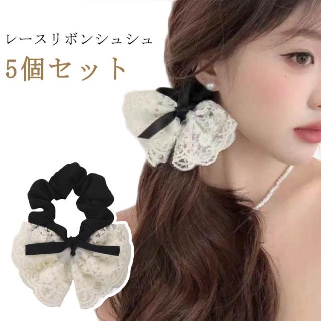 | レースリボンシュシュ 5個セット 大きいレースリボンが可愛いヘアアクセサリー! 普段使いから入学式、卒業式まで幅広く活躍。 | |