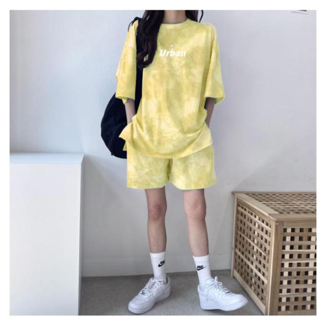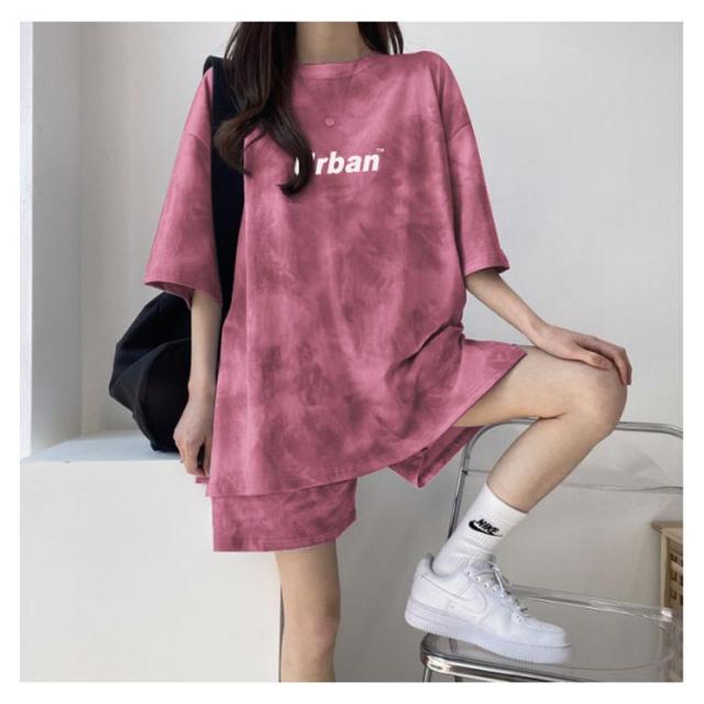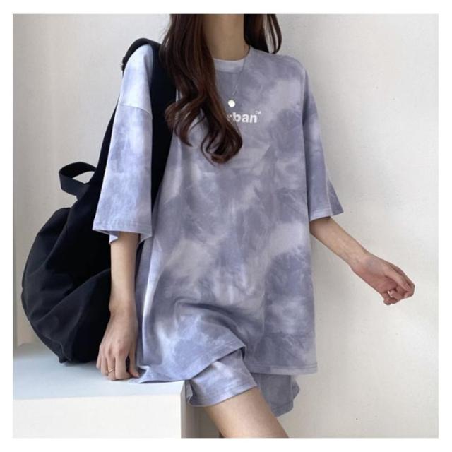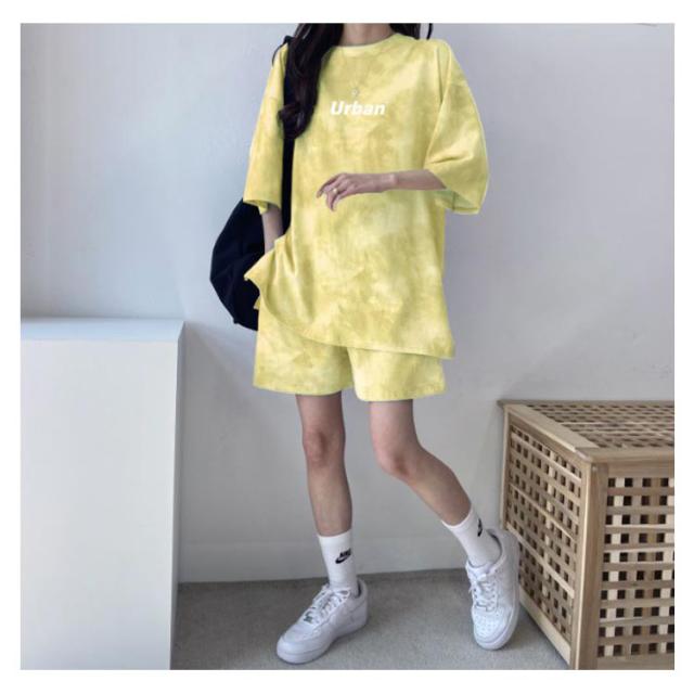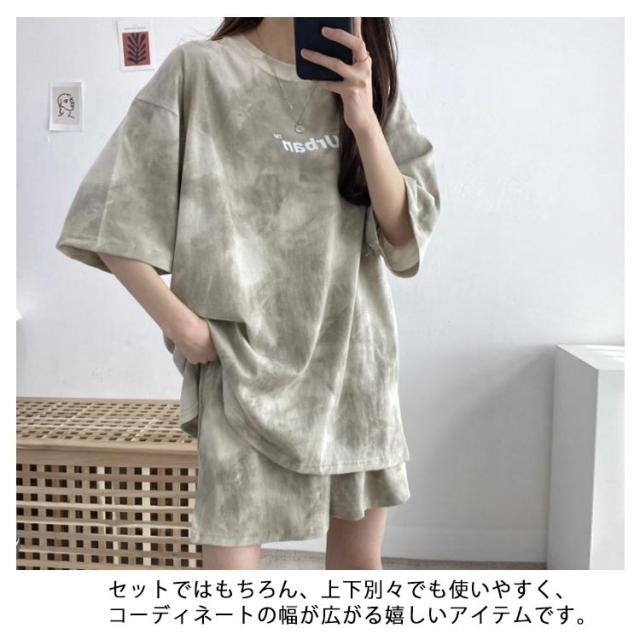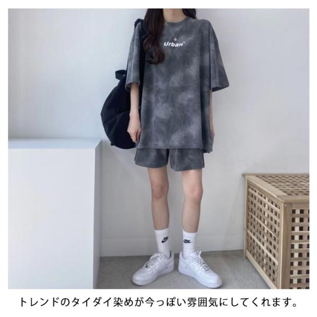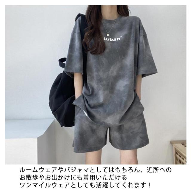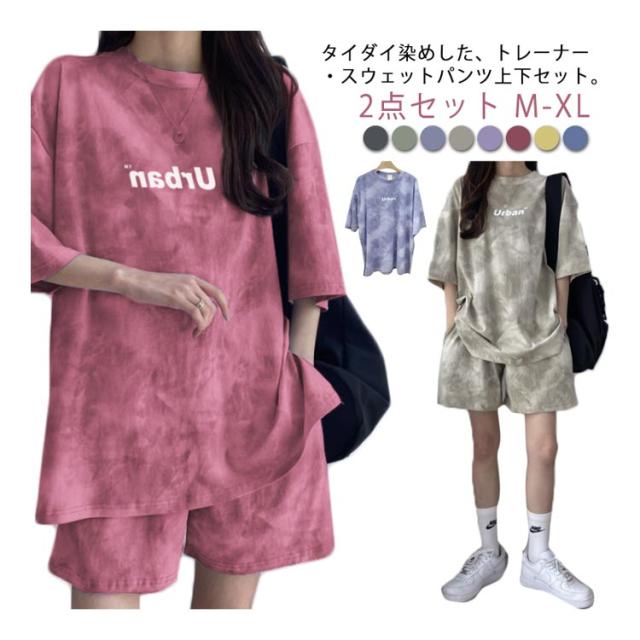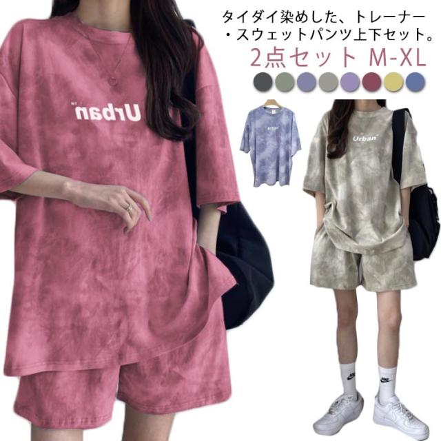 スウェット タイダイ柄 2点セット セットアップ ゆったり 薄手 ルームウェア ジャージ N-5XL 上下セットアップ おしゃれ カレッジ ワンマイル N-5XL レディース 夏物 無地 半袖 Tシャツ ショートパンツ リラックスウェア 大きいサイズ