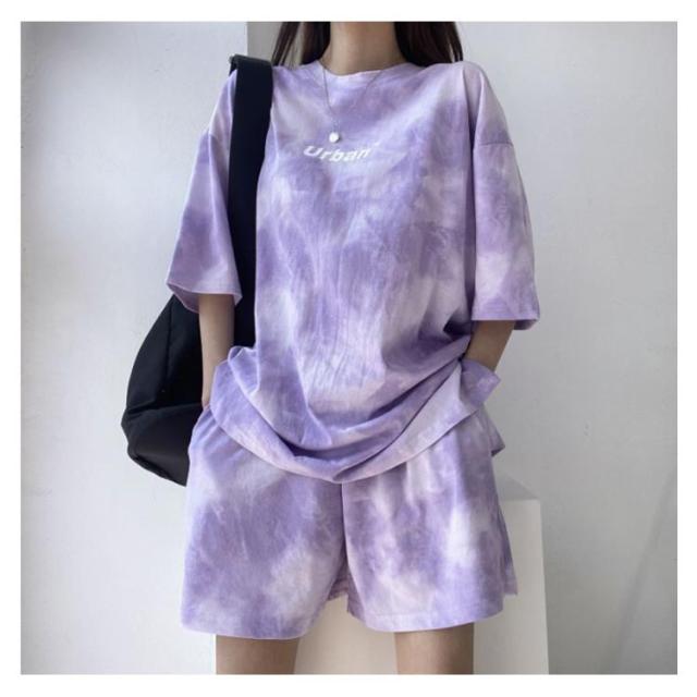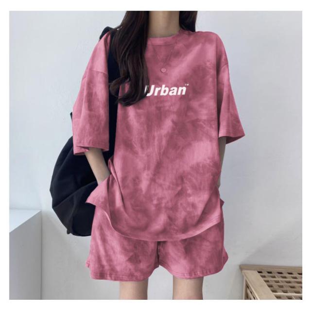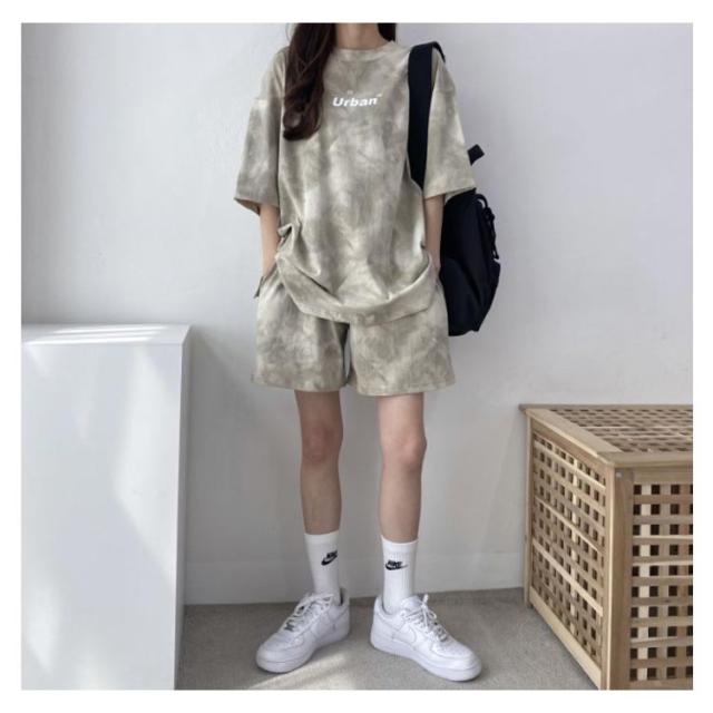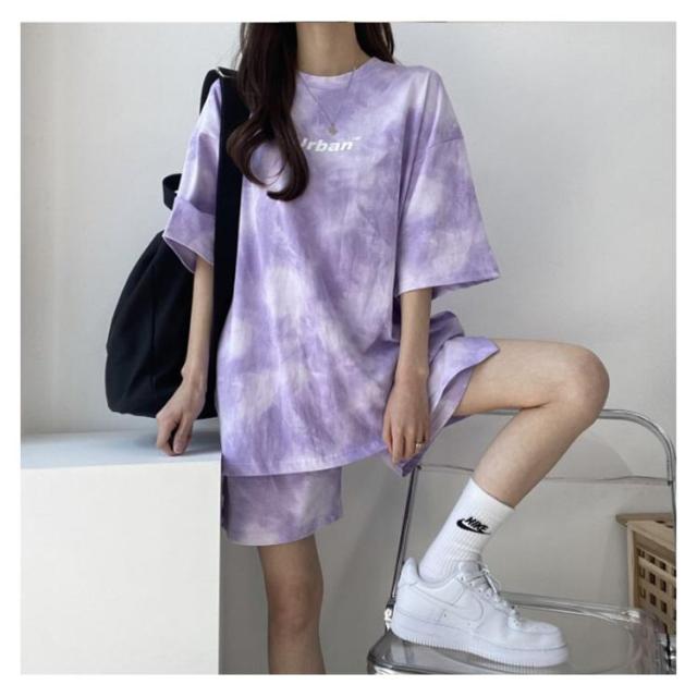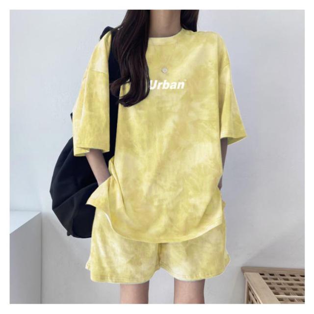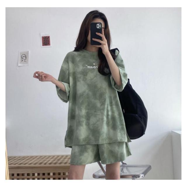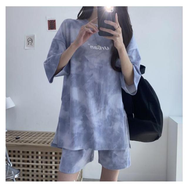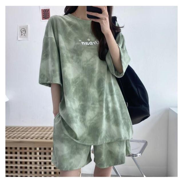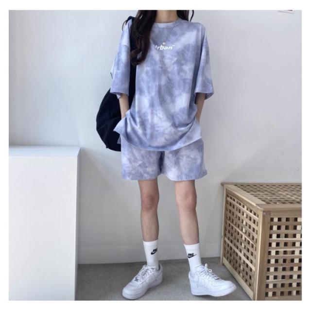 スウェット タイダイ柄 2点セット セットアップ ゆったり 薄手 ルームウェア ジャージ N-5XL 上下セットアップ おしゃれ カレッジ ワンマイル N-5XL レディース 夏物 無地 半袖 Tシャツ ショートパンツ リラックスウェア 大きいサイズ