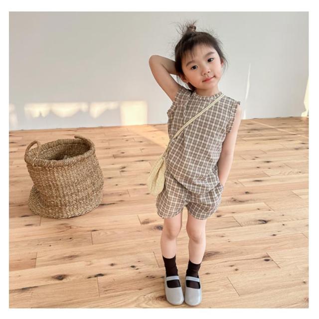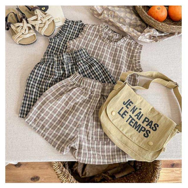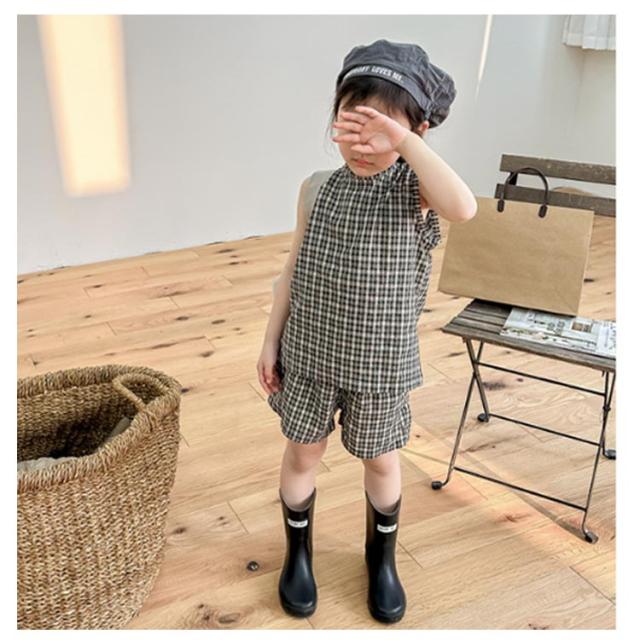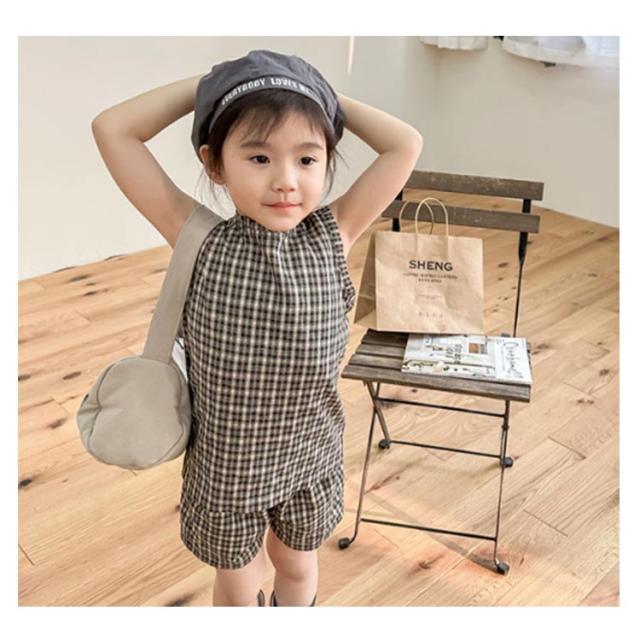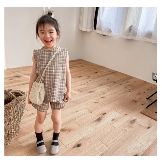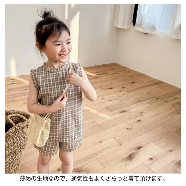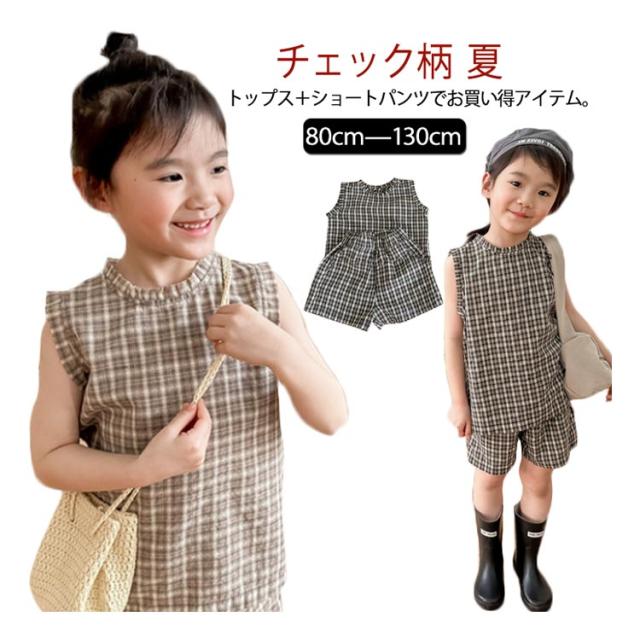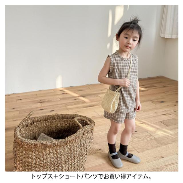 ハーフパンツ トップス 韓国子供服 チェック柄 男の子 セットアップ おしゃれ トップス ノースリーブ ボトムス チェック柄 夏 ナチュラル キッズ服 かわいい ベビー服 女の子 ショートパンツ 入学 入園 保育園 誕生日
