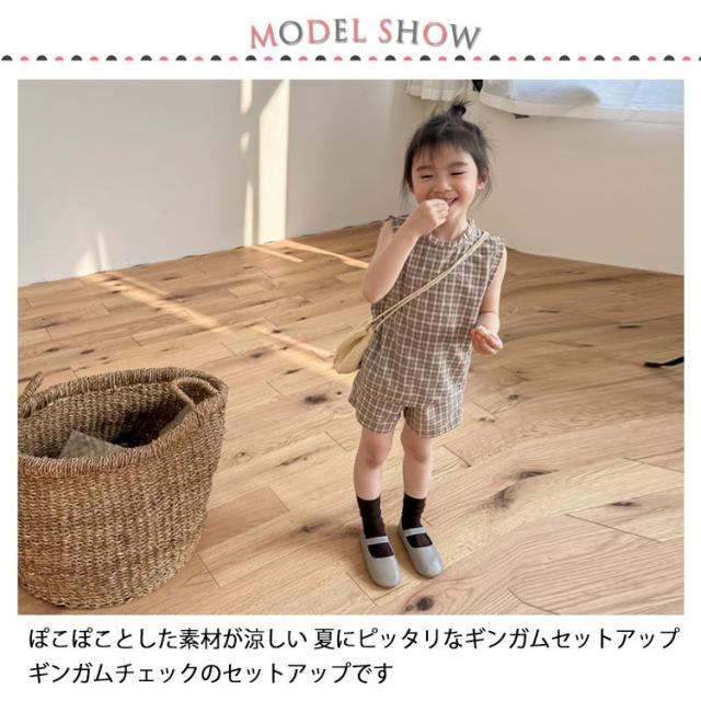 | ぽこぽことした素材が涼しい 夏にピッタリなギンガムセットアップ ギンガムチェックのセットアップです トップス+ショートパンツでお買い得アイテム。 薄めの生地なので、通気性もよくさらっと着て頂けます。 カジュアルコーデにはもちろん、通学通園やアウトドア、ルームウェア(部屋着)など様々シーンで活躍してくれる! | |