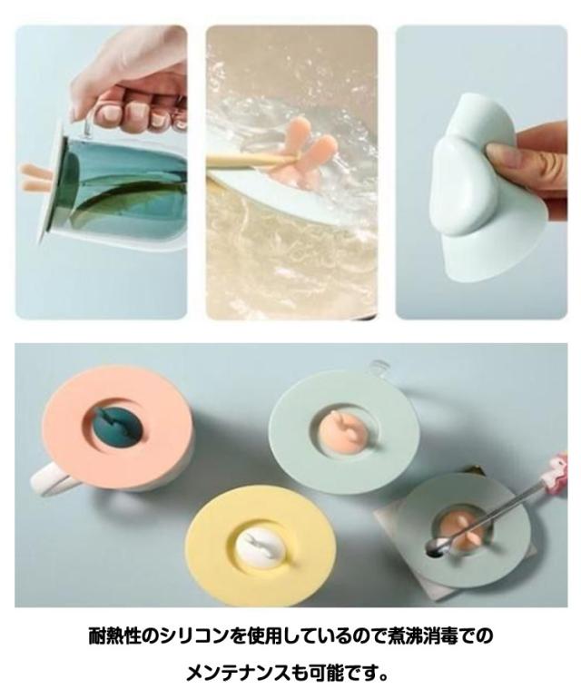| 2枚セット!マグカップやコップにかぶせて蓋 持ち手部分に動物たちがあしらわれています。 耐熱性のシリコンを使用しているので煮沸消毒でのメンテナンスも可能です。 柔軟性のある質感でカップに密着し防塵効果抜群♪ | |