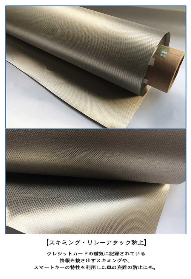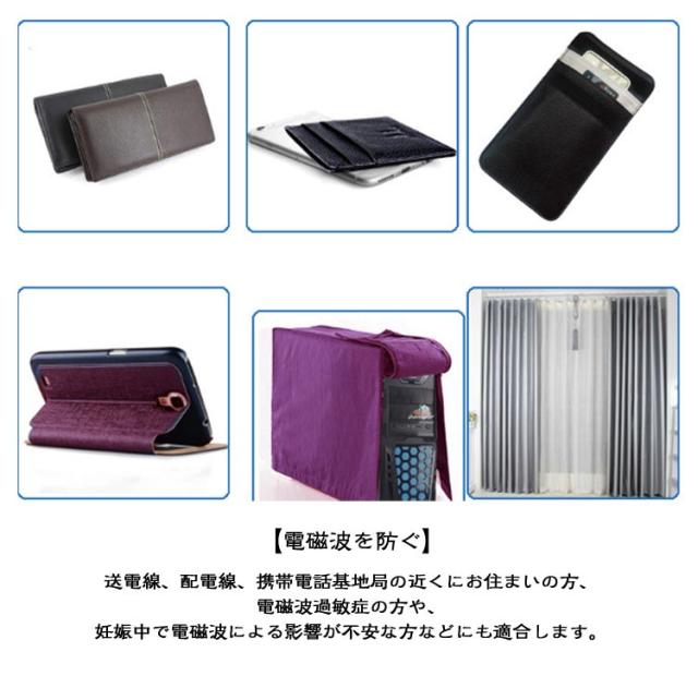 | 【特殊生地の電磁波ドシート】:身の回りの電磁波が気になる電化製品(pc・スマートフォン・tv・無線ルーター・電子レンジなど)の電磁波を遮断、軽減するシート。 【スキミング・リレーアタック防止】:クレジットカードの磁気に記録されている情報を抜き出すスキミングや、スマートキーの特性を利用した車の盗難の防止にも。 【ハサミで切れる・アレンジがきく】 お好きなサイズにカットして電化製品をカバーしたり、袋状に加工してスマフォを入れたり、ブランケットのようにも使えます。 【電磁波を防ぐ】送電線、配電線、携帯電話基地局の近くにお住まいの方、電磁波過敏症の方や、妊娠中で電磁波による影響が不安な方などにも適合します。 | |