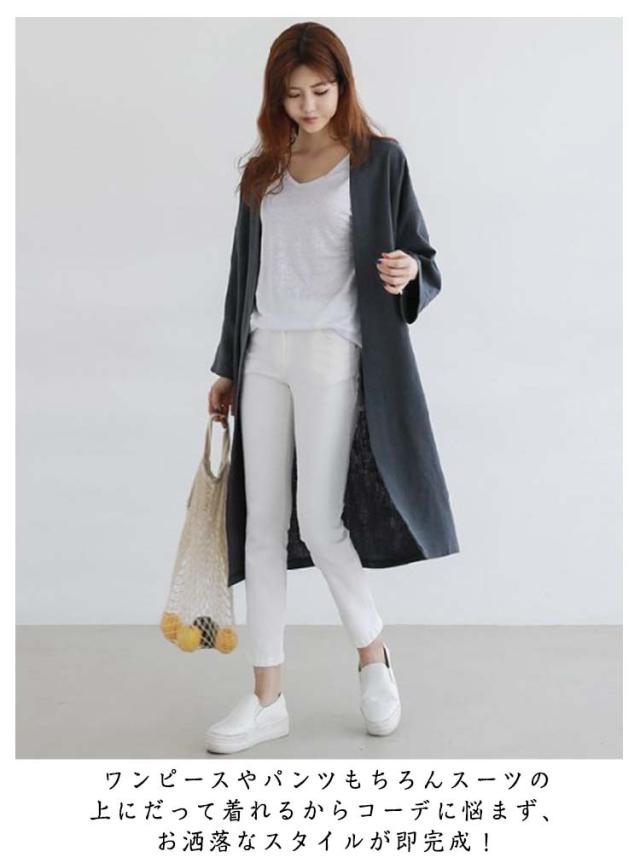 ジャケット 春 ロングジャケット レディース コットンリネン 羽織り 上着 コート ロングコート トレンチコート ライトアウター アウター リネンジャケット ロング丈 綿 麻 ノーカラー ジャケット ロングジャケット 体型カバー
