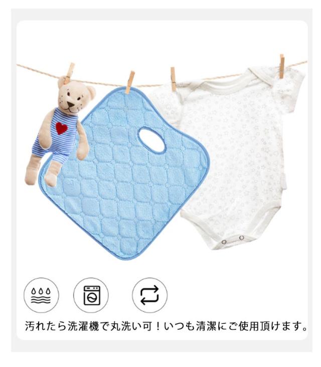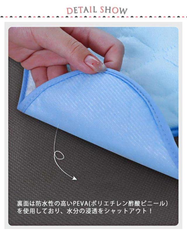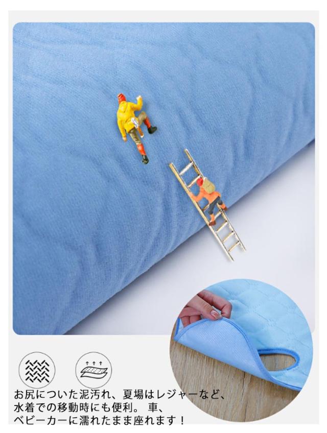 | 敷くだけでしっかり漏れ・汚れを防ぎます。 トイレトレーニング中の車のお出かけが心配。もしもの時に敷くだけで防水シートが座面を守ります! ベビーカーとチャイルドシートでも両方使える!楕円形のベルト穴にシートベルトを通せばずれる心配なし 。 裏面は防水性の高いPEVA(ポリエチレン酢酸ビニール)を使用しており、水分の浸透をシャットアウト! お尻についた泥汚れ、夏場はレジャーなど、水着での移動時にも便利。 車、ベビーカーに濡れたまま座れます! 汚れたら洗濯機で丸洗い可!いつも清潔にご使用頂けます。 | |