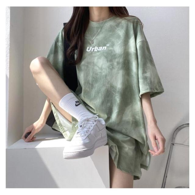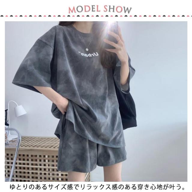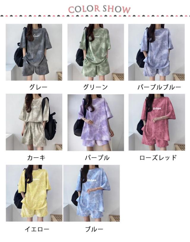 ジャージ セットアップ N-5XL ゆったり タイダイ柄 部屋着 スウェット カレッジ 薄手 上下セットアップ 2点セット レディース N-5XL ワンマイル ルームウェア 夏物 無地 半袖 Tシャツ ショートパンツ リラックスウェア 大きいサイズ