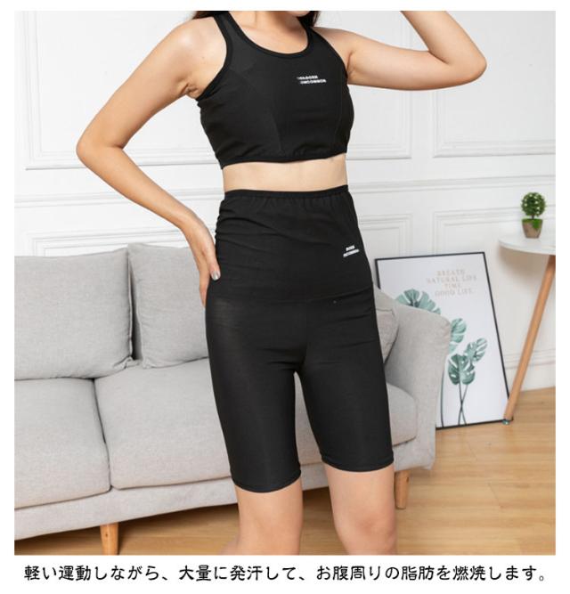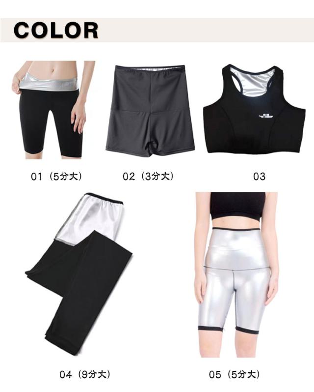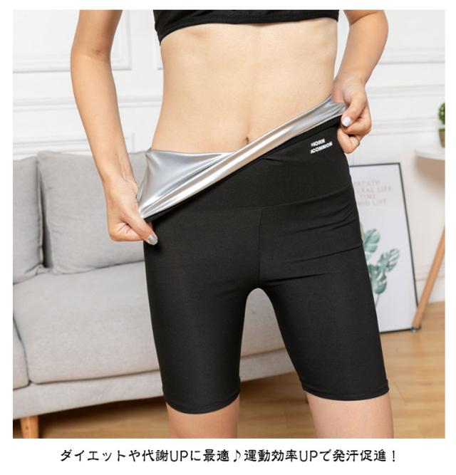 | オシャレなサウナスーツ。ダイエットや代謝UPに最適♪運動効率UPで発汗促進! 軽い運動しながら、大量に発汗して、お腹周りの脂肪を燃焼します。 発汗作用で、ポッコリお腹、太もものダイエットだけでなく、新陳代謝を高めることで美肌効果も期待できます。 ジョギング、ウォーキング、ヨガなど、フィットネスとスポーツに活躍できます。 5分丈と9分丈と3分丈の3タイプ2サイズ展開から選べます。 | |