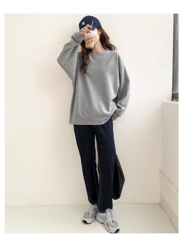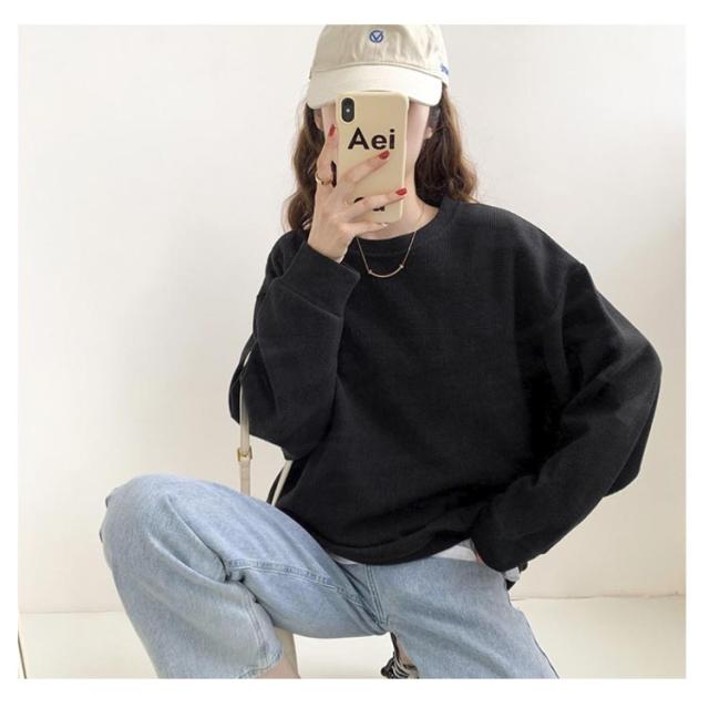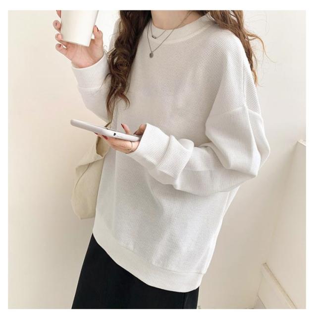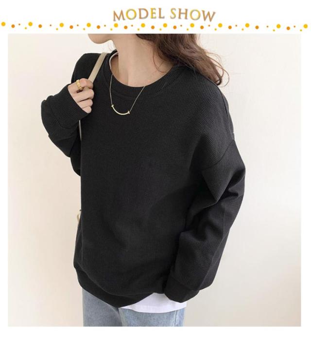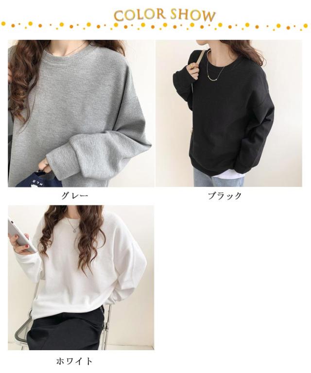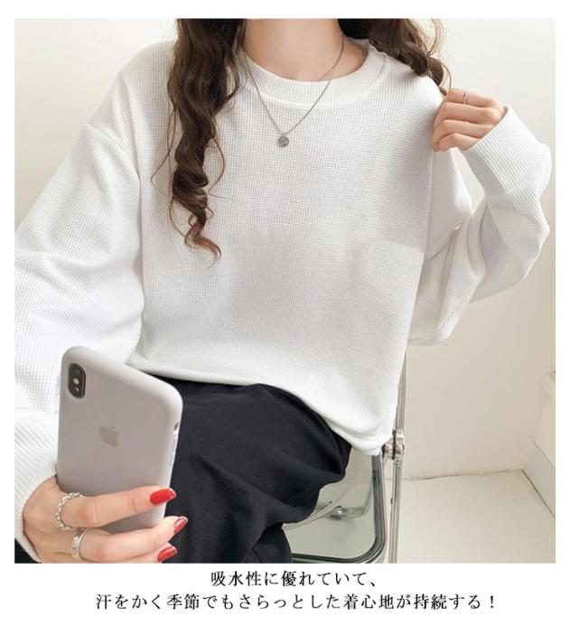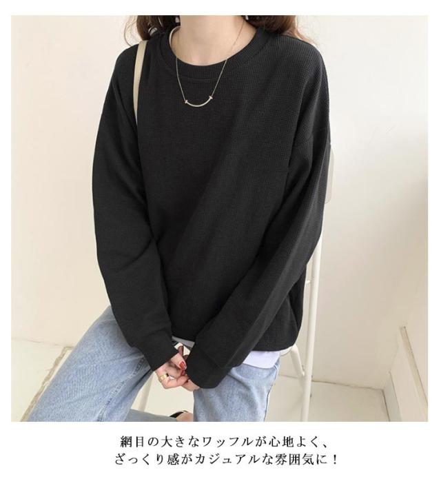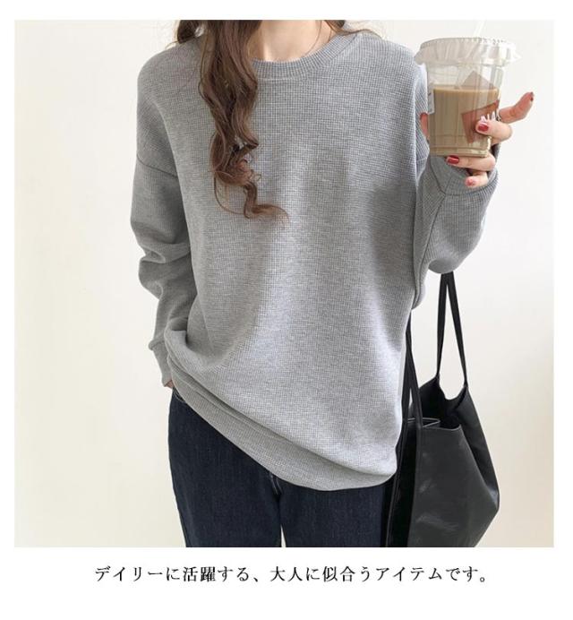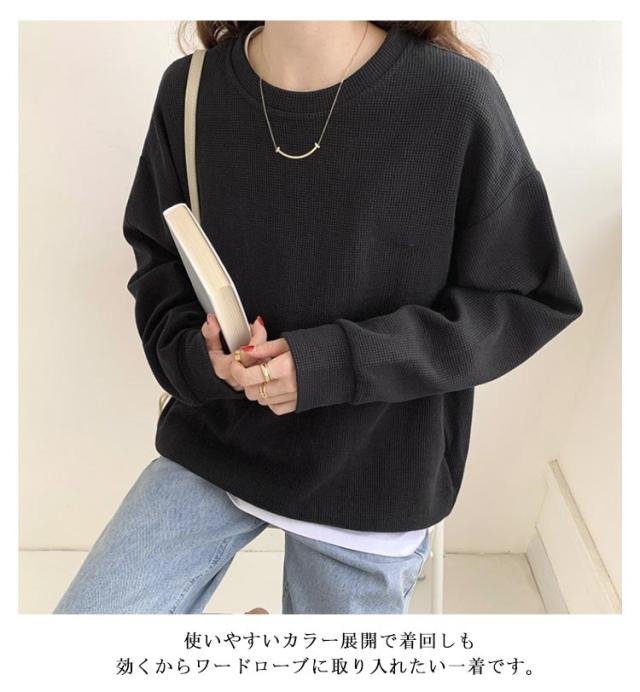 ワッフル ワッフル素材 韓国 クルーネック ロングTシャツ 薄手 ロンT スウェット Tシャツ ゆったり 大きいサイズ ロンt オーバーサイズ 大きいサイズ トレーナー 体型カバー カットソー 無地 長袖 ワッフル リブ 丸首 体型カバー 春