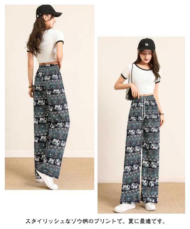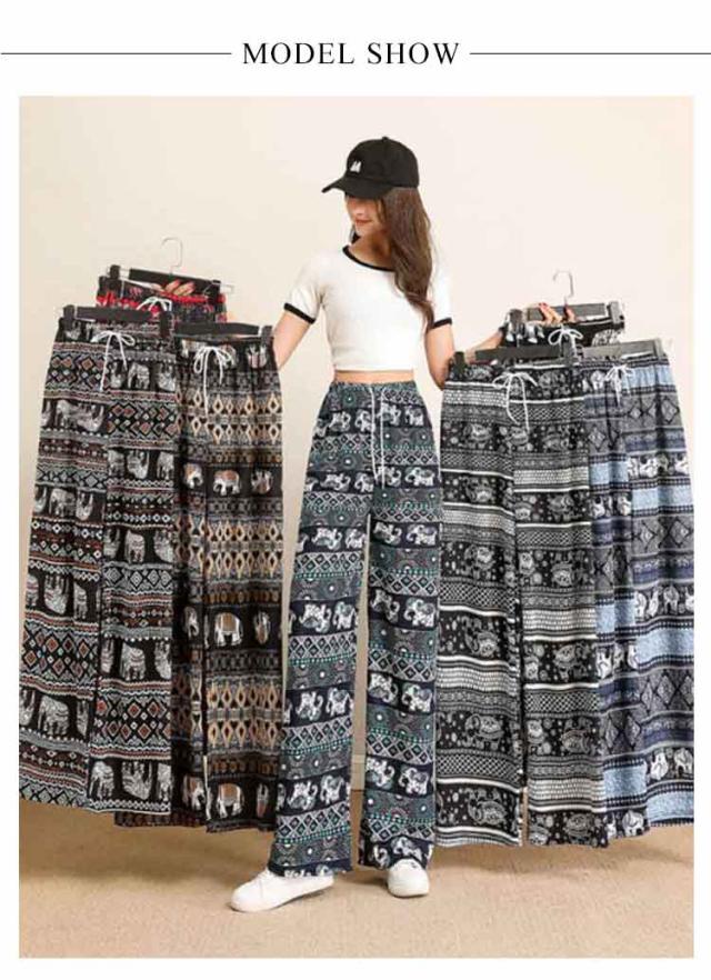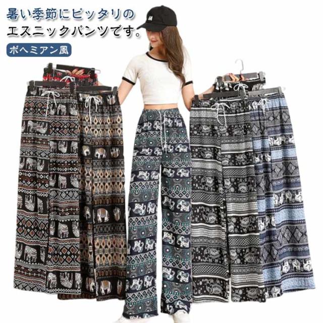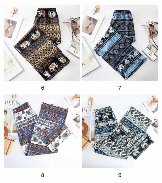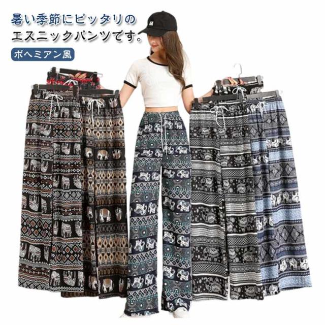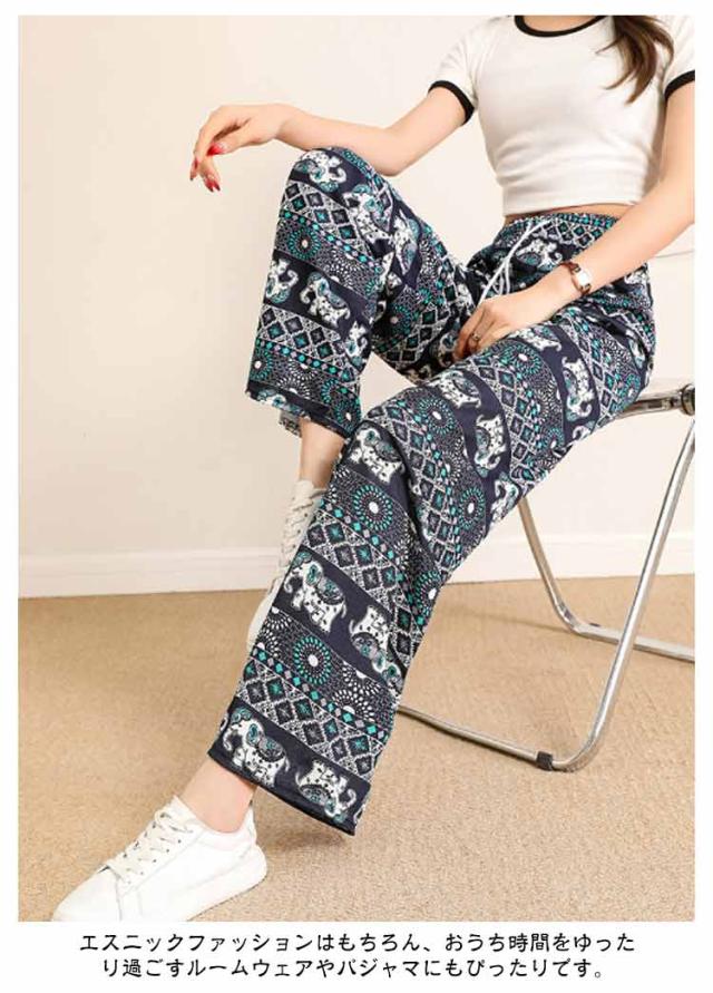 春夏 軽い 総柄 ヨガパンツ レディース 涼しい タイパンツ タイパンツ ワイドパンツ カジュアルパンツ ウエストゴム エスニック 薄手 ストレート ロングパンツ アジアン 部屋着 ルームウェア お洒落