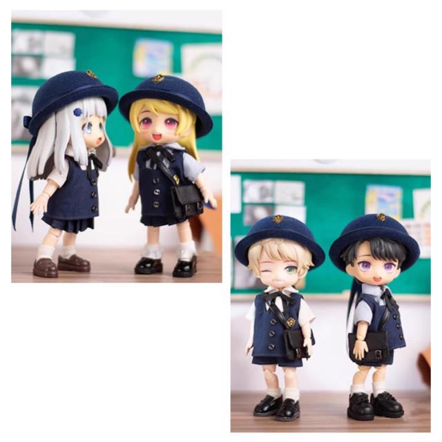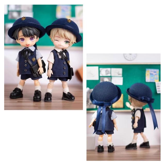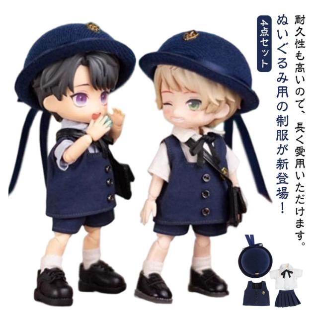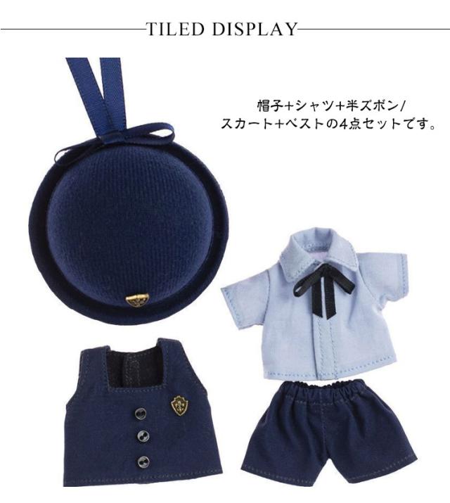 12bjd 11cm 人形の服 着せ替え 4点セット 男の子 15cm 帽子+シャツ+半ズボン/スカート+ベスト 女の子 制服 綿人形の服 ぬいぐるみ用 人形のドレスアップ 可愛い 入園 入学