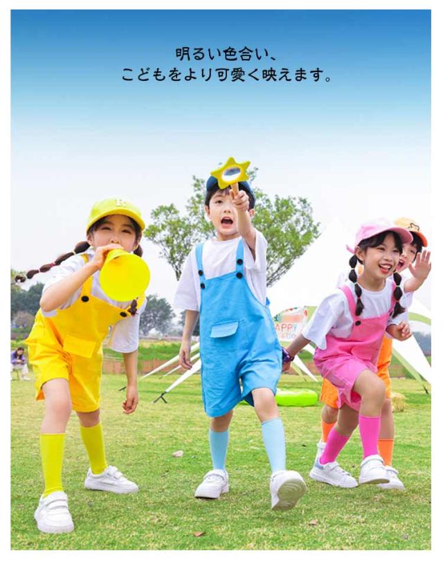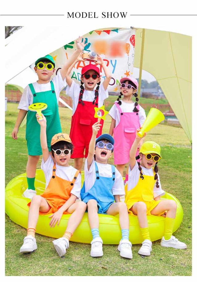 | サロペット・Tシャツ・靴下の3セットです。 明るい色合い、こどもをより可愛く映えます。 発表会や記念写真撮影にピッタリ! ダンス、体操、イベントなどのチームウェアとしてオススメ。 | |