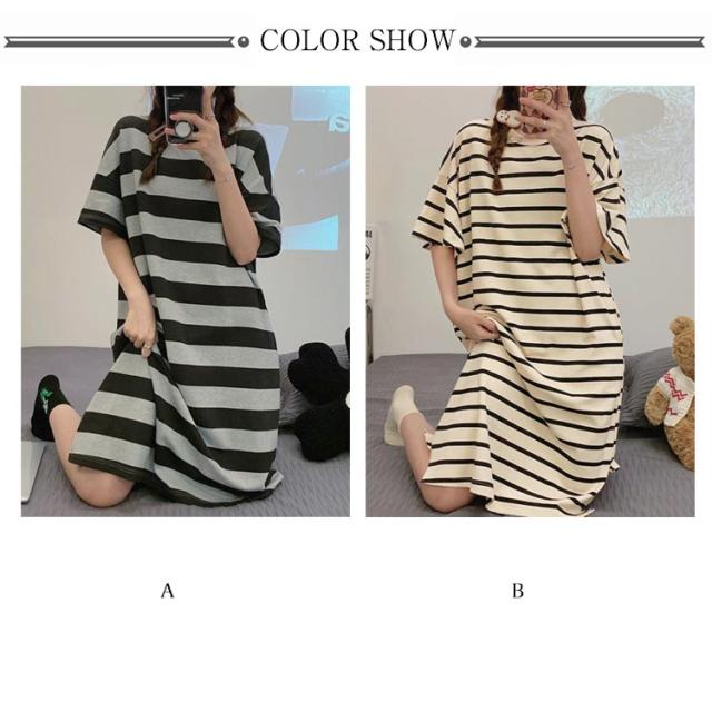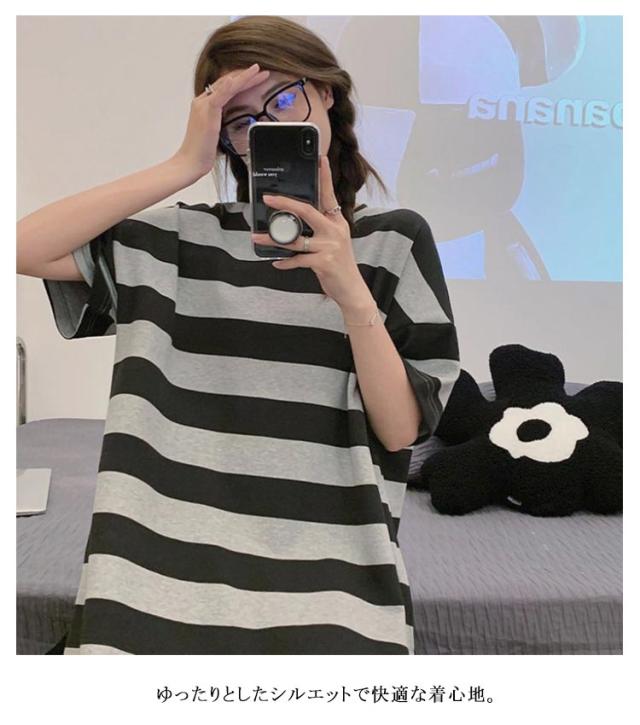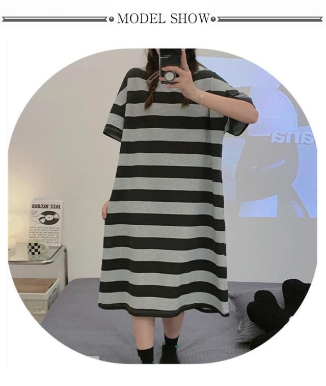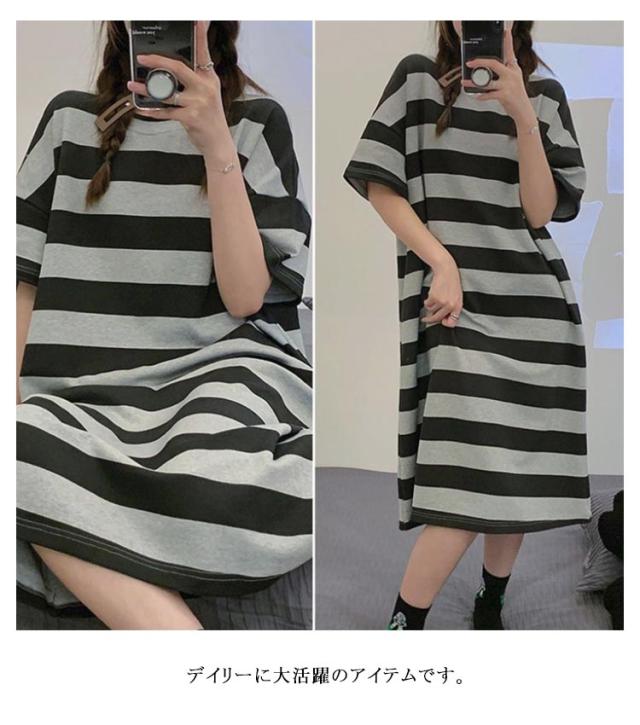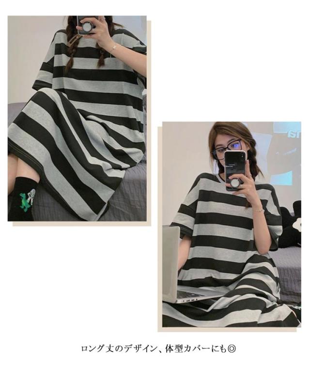 半袖 Tシャツワンピ 春夏 ワンピース 着痩せ レディース Tシャツワンピ tシャツワンピース 大きいサイズ マキシtシャツ ボーダー柄 ルームワンピ 部屋着 膝下 体型カバー カットソー カジュアル おしゃれ 送料無料 ロングワンピース ゆったり シンプル 夏服