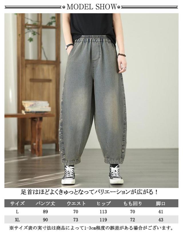 コクーンパンツ ロング丈 パンツ 春 エルサルパンツ ワイドパンツ デニムパンツ バルーンパンツ ハロン バルーンパンツ ゆったり 体型カバー デニム ロングパンツ 九分丈 テーパードパンツ 長ズボン ボトムス ワイド ポケット 夏