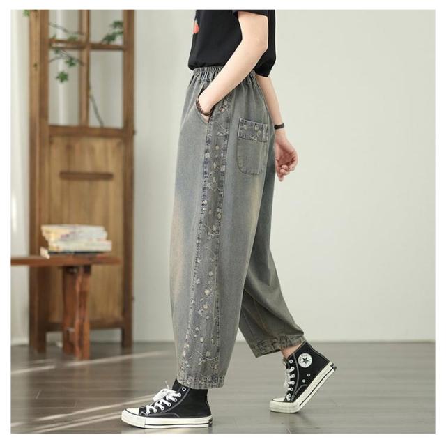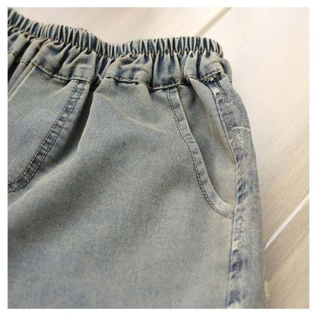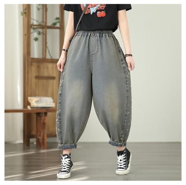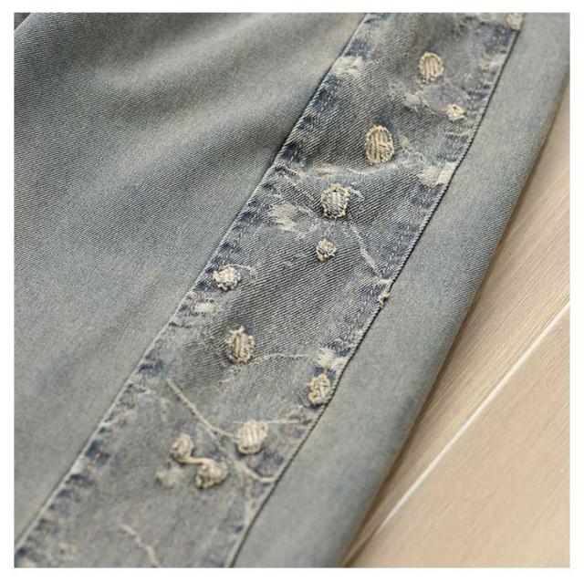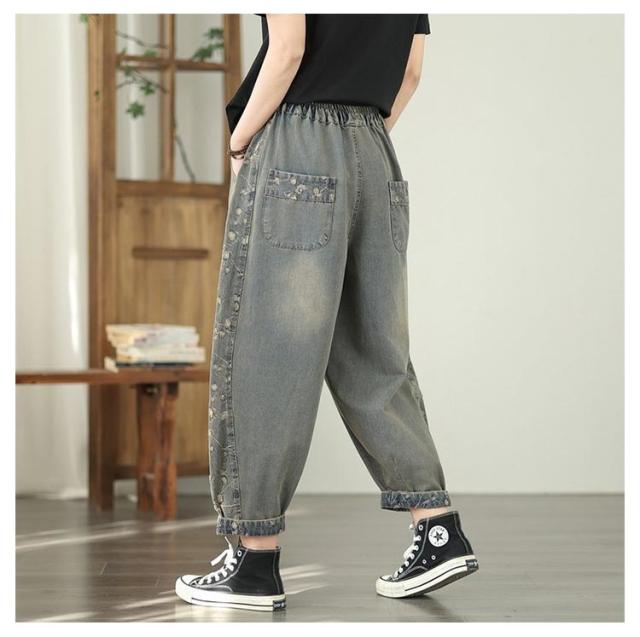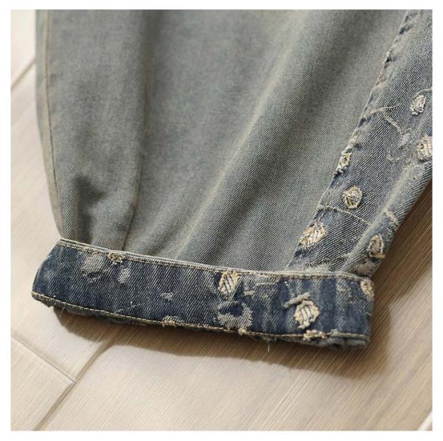 | 大流行のデニムパンツで太ももゆったり☆ゆったり着れて、体型カバー! 足首はほどよくきゅっとなってバリエーションが広がる! | |