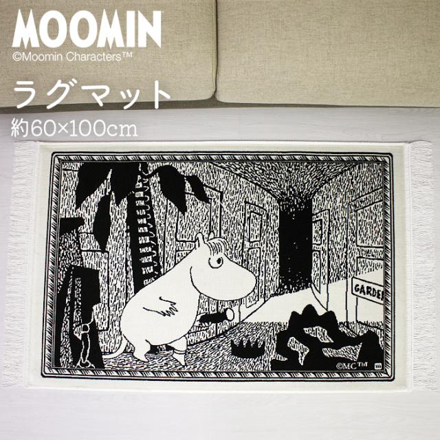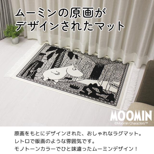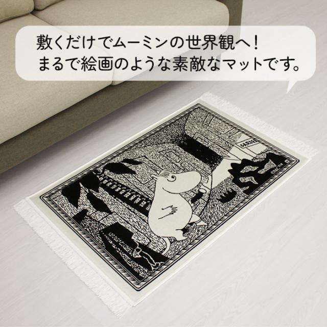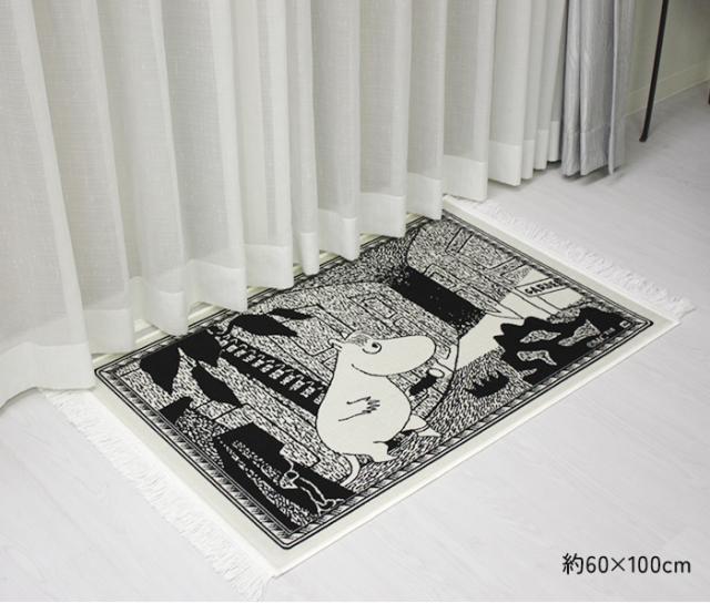 ムーミン マット ラグマット 玄関マット 約60×100cm ムーミン 灯りをつけて (Y) ラグ おしゃれ グッズ かわいい 北欧 ジャガード ムーミンシリーズ 室内 屋内用 モノクロ モノトーン 原画 レトロ フロアマット 玄関用 白黒 シンプル 引っ越し 新生活