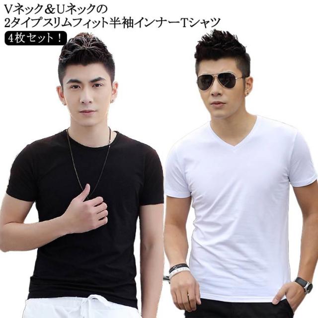 | 4枚セット!Vネック&Uネックの2タイプスリムフィット半袖インナーtシャツ。 柔らかい素材を採用し、身体にフィットして着心地抜群! 深すぎず浅過ぎない、丁度いい開きのネックデザインで重ね着にも重宝! シンプルながらも存在感のあるデザインで普段使いはもちろん、 バスケやサッカー、ジョギングなどのスポーツ、ジムなどのトレーニング用としても! | |