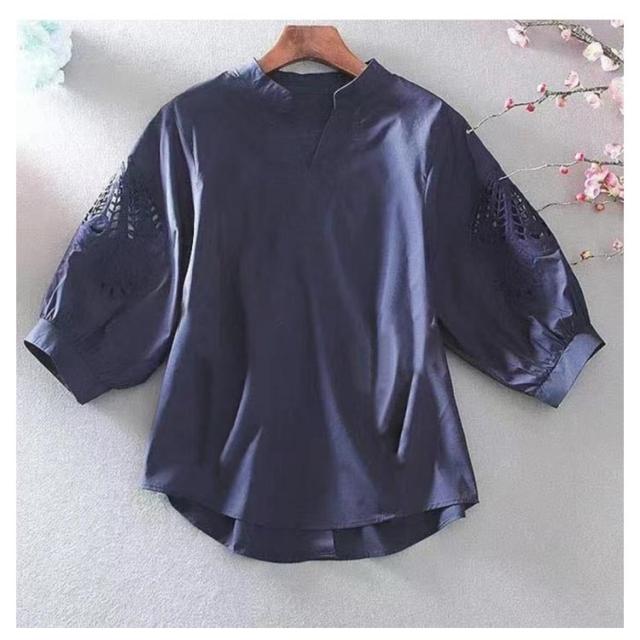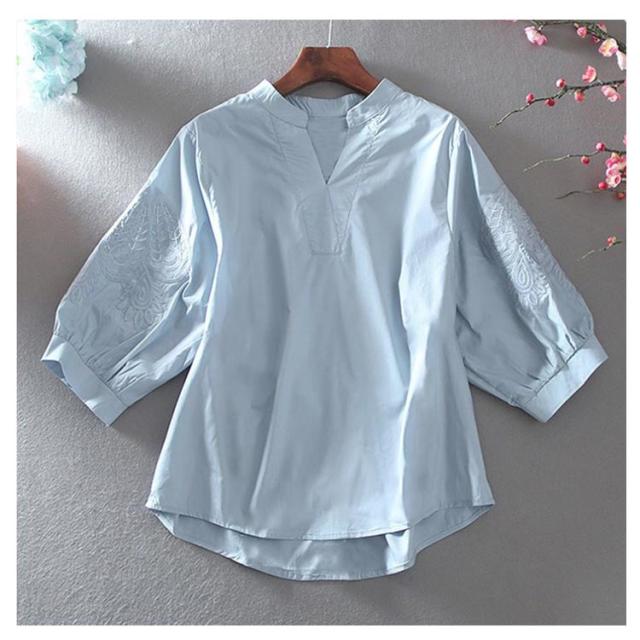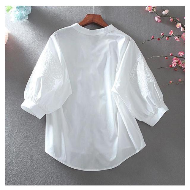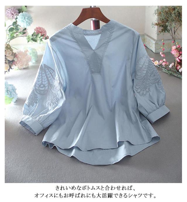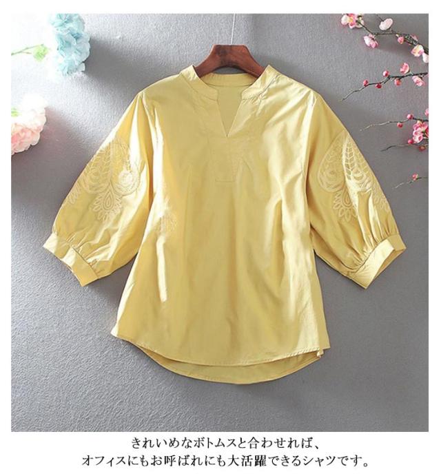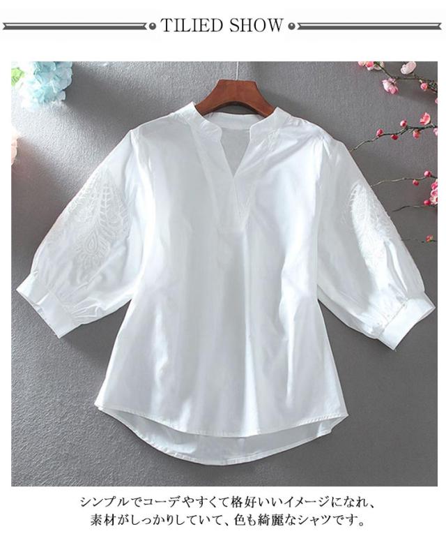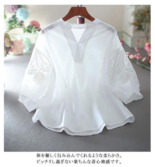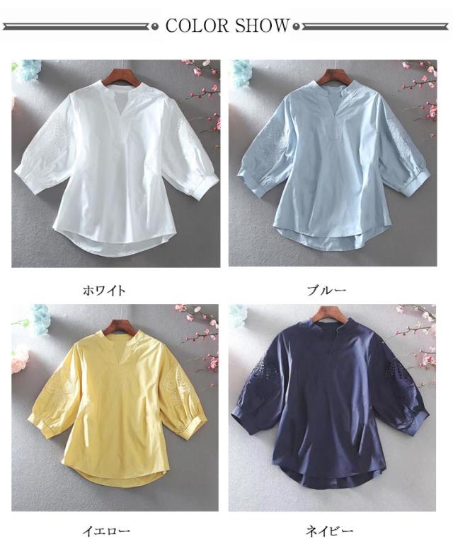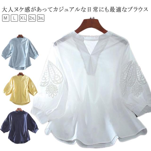 ブラウス きれいめ バルーン袖 薄手 トップス ビジネス 夏 女性 透け感 春 エスニック風 春夏 涼しい 通勤 シャツ レディース 着?せ 大きいサイズ 大人 7分袖 ブラウス シャツ 可愛い シャツ 無地 おしゃれ カジュアル
