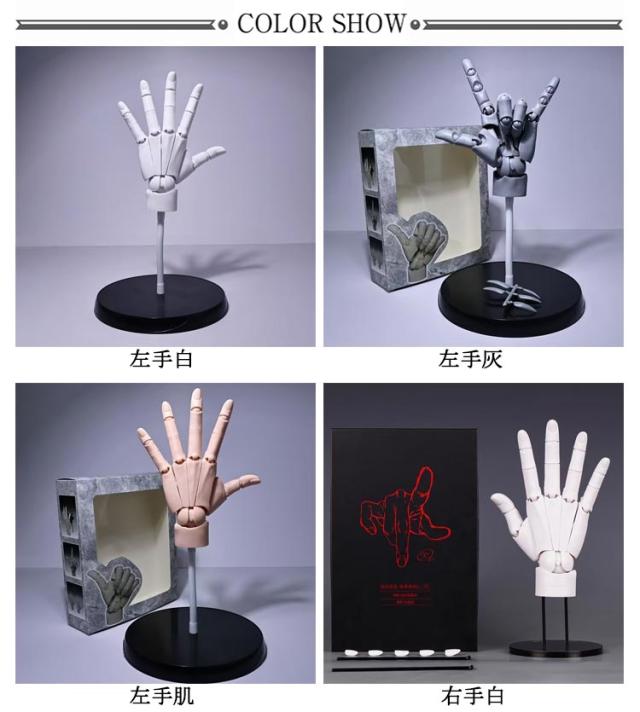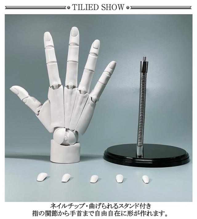 R バイオニック指関節 1/1 デッサン用素体美術 右手 ネイルチップ付き アニメ L 1/1 曲げられるスタンド付き 左手 可動式 フィギュア ホワイト グレー スキンカラー モデル ハンド 模型 イラスト デッサン 可動手首