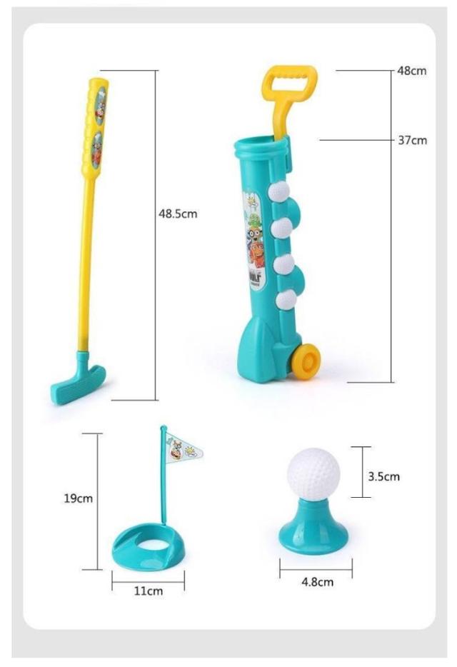 | サイズについての説明 | 表記通り セット内容:ゴルフクラブ3本、ボール4個、ボールスタンド2つ、カップ2つ、収納バケツ1個 |