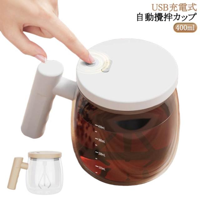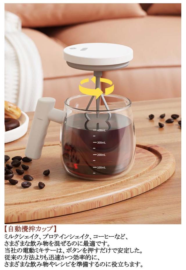 大容量 自動撹拌マグカップ 自動撹拌マグカップ マグカップ 400ML 自動ミキサーカップ ガラス製 漏れ防止 自動撹拌 家庭用 防水 ミキシングカップ ミキシングカップ コーヒーカップ USB充電式 電池式 飲料 ハンドル付き コーヒー 蓋付き お茶カップ オフィス 家庭 仕事