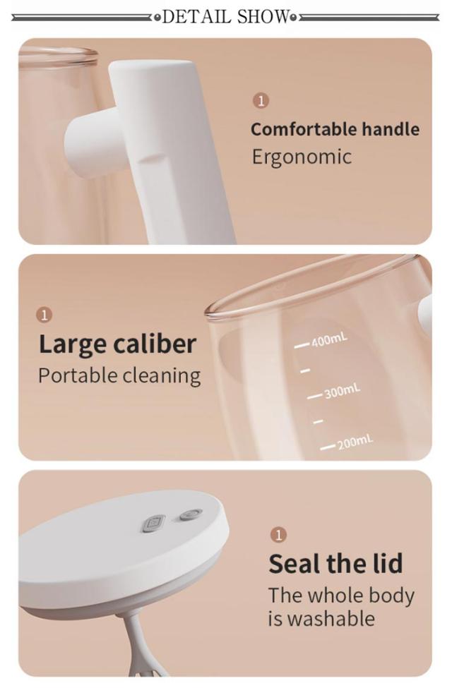 | サイズについての説明 | サイズ:145*105*88mm、【容量】400ml ポイント: 耐熱ガラス 目盛り付き 防水・洗いやすい 人間工学に基づいたデザイン 快適な木目調ハンドル&ふた 取り外し可能 TYPC充電式 2回押す:起動する 1回押す:電源OFF |