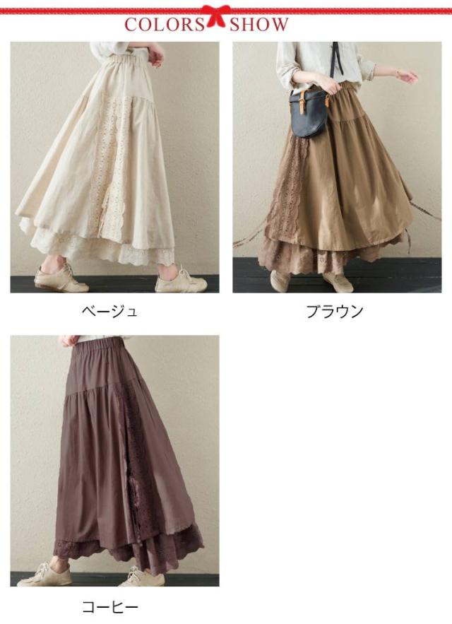 ミディアム丈 レース刺繍 ミディ丈スカート ロングスカート 春夏 ナチュラル ロング丈 Aライン スカート かわいい 体型カバー 裏地付き スカート 秋
