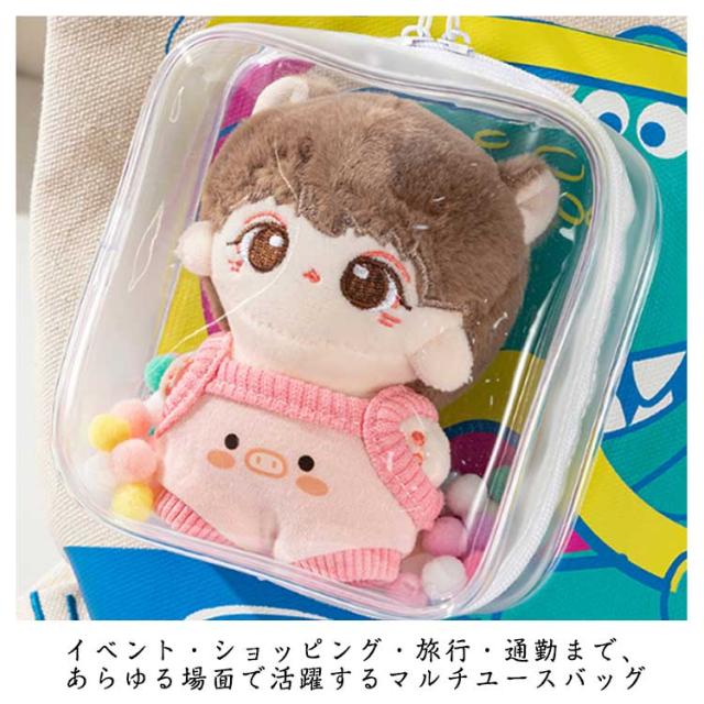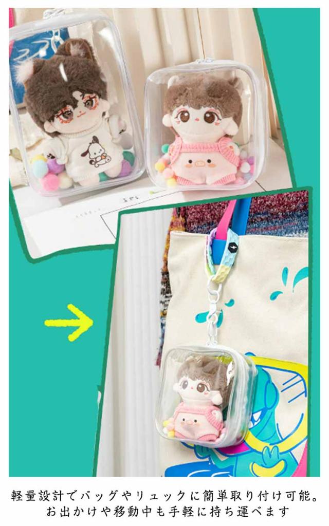 | ・完全透明な素材使用で、お気に入りのぬいぐるみや人形をクリアに見せられる旅行用バッグ。中身の可愛さがそのまま映えます! ・キーチェーン付属のポンポン(スポンジボール)で自由にデコレーション!人形の魅力をさらに引き立てます ・ぬいぐるみ・人形・バッジなど、さまざまなアイテムをまとめて収納。コンパクトながら大容量です ・軽量設計でバッグやリュックに簡単取り付け可能。お出かけや移動中も手軽に持ち運べます ・イベント・ショッピング・旅行・通勤まで、あらゆる場面で活躍するマルチユースバッグ | |