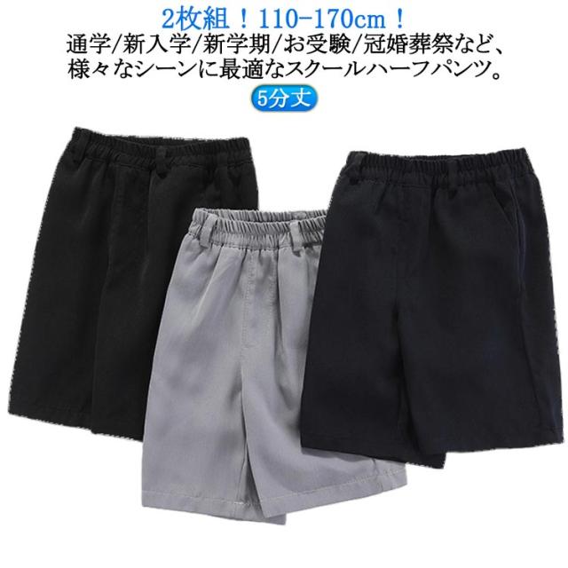 2枚組 小学校 5分丈 紺 黒 ウエストゴム 半ズボン スクールパンツ ノーアイロン 総ゴム 小学生 キッズ グレー 学生服 通学服 キッズ 制服 スクール 洗える 小学生 2枚組 ジュニア 卒業式 入学式 ショートパンツ 冠婚葬祭