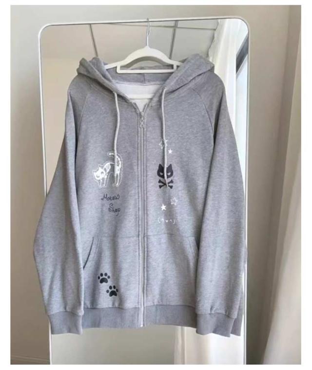 アウター 猫耳パーカー 原宿風 サブカル系 おしゃれ 長袖 薄手 トップス レディース トレーナー スウェット フード付き ジップパーカー 地雷系 カジュアル 猫耳 ストリート系 猫耳パーカー 可愛い プリント 学生