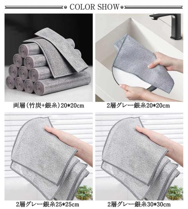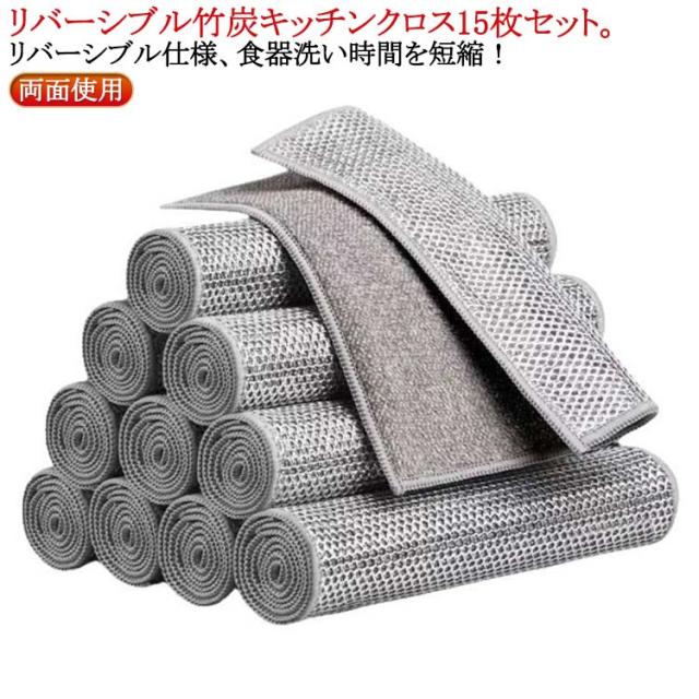 リバーシブル ふきん 15枚セット 銀糸入り 耐久性 耐熱 お手入れ簡単 両面使用 20×20cm 竹炭 ワイヤーふきん 防油 キッチンクロス 15枚セット 繰り返し使用 食器洗い メッシュふきん 竹炭キッチンクロス 吸水 速乾 ワイヤーふきん