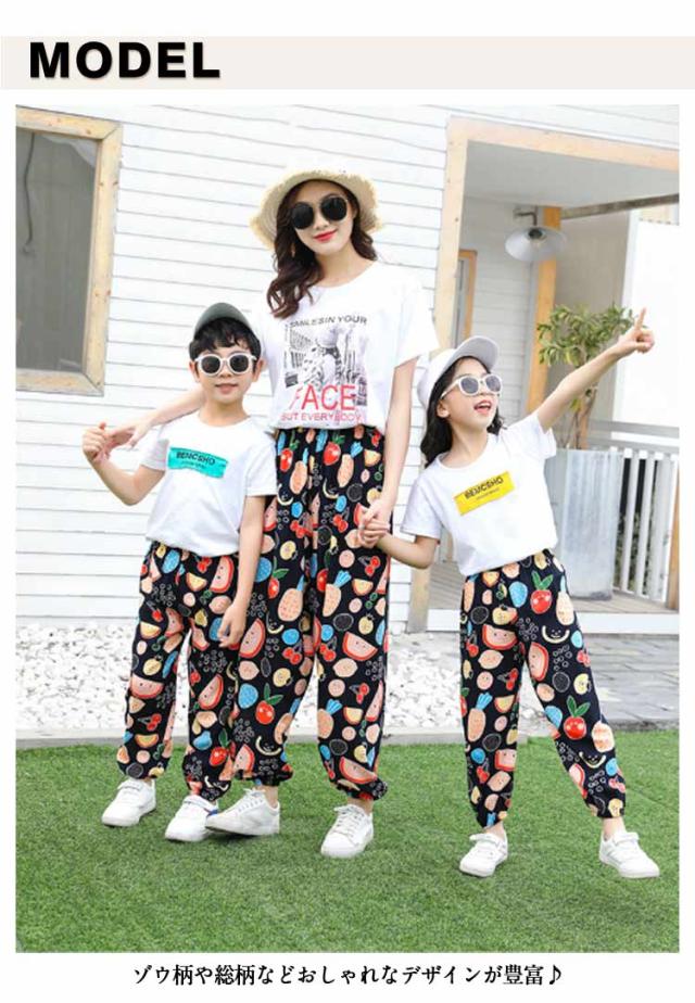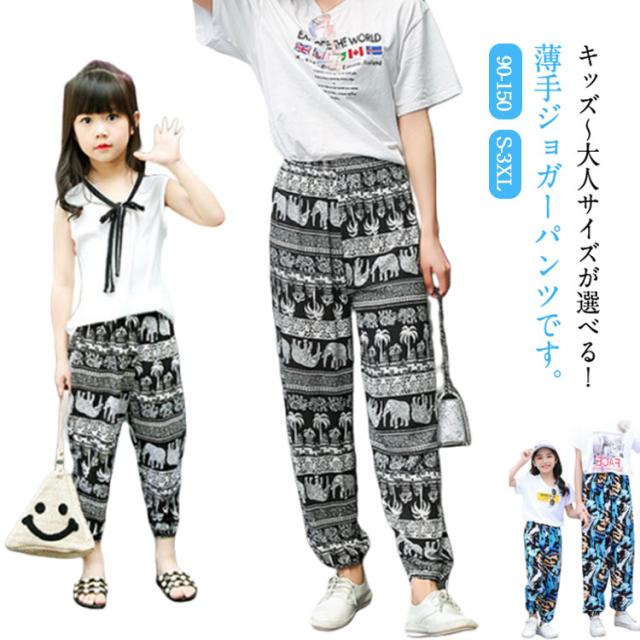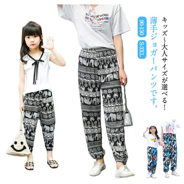 レディース ジョガーパンツ ベビー 大人 ロングパンツ 花柄 部屋着 薄手 ウエストゴム ゾウ柄 総柄 可愛い おしゃれ サルエルパンツ 夏 女の子 ルームパンツ 男の子 タイパンツ 長ズボン ビーチパンツ ジョガーパンツ 裾ゴム