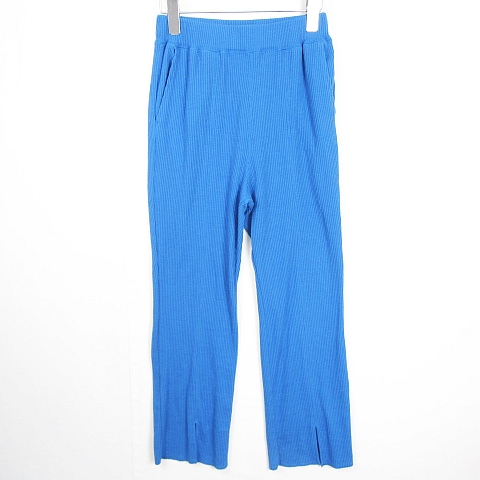【中古】ニコアンド Niko and.. リブ ニット パンツ スリット ストレッチ 綿 M ライトブルー