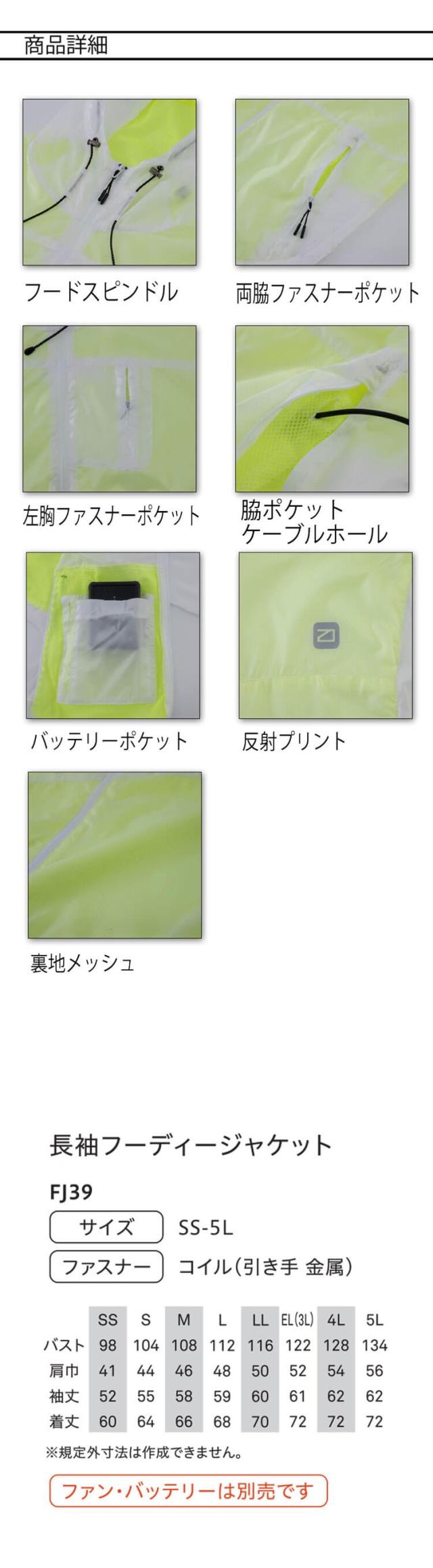 空調風神服 長袖フーディジャケット(ファンなし) EBA5097 アーリーバード EARLY BIRD ARNO ビッグボーン