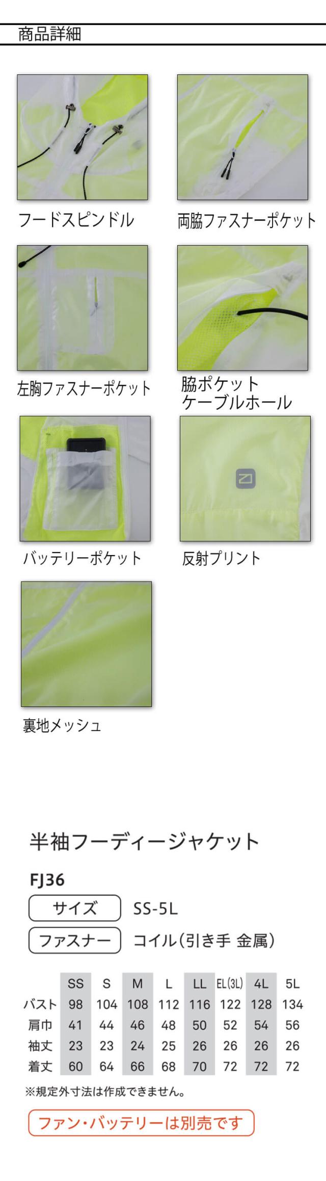 空調風神服 半袖フーディジャケット(ファンなし) EBA5098 アーリーバード EARLY BIRD ARNO ビッグボーン