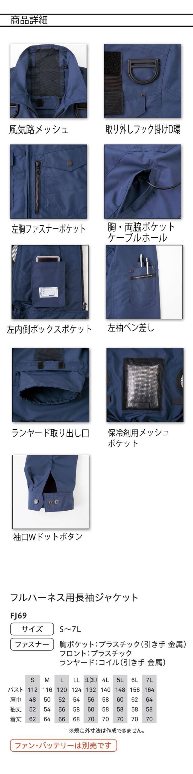 空調風神服 フルハーネス用長袖ジャケット(ファンなし) BK6237FP ビッグボーン