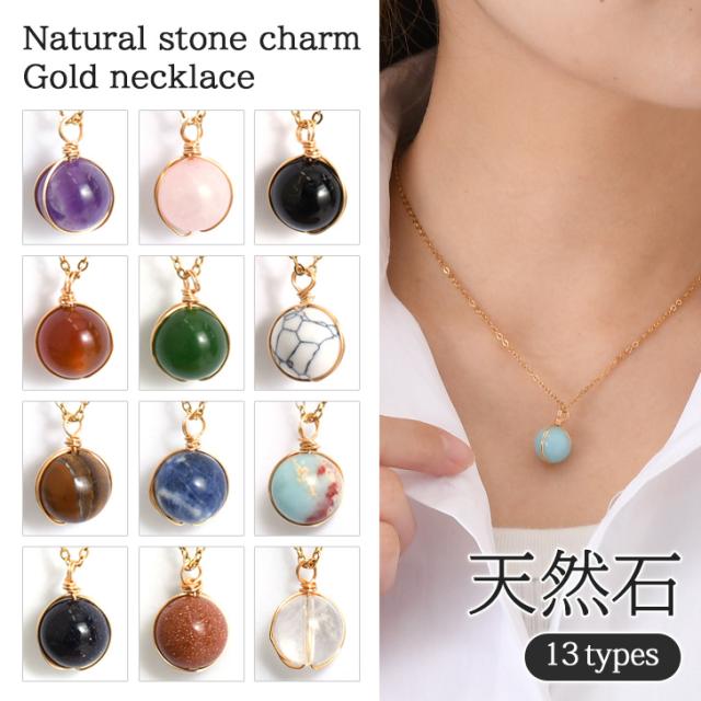 新作 選べる13種類12mm天然石チャームゴールドネックレス レディース メンズ ネックレス アクセサリー ペンダント 首飾り 天然石 誕生石 ストーン 12mm チャーム ゴールド チェーン 小振り 細い 華奢