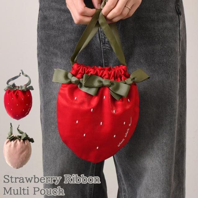 リボン付きのイチゴデザインが可愛いマルチポーチ