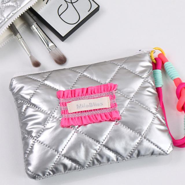 新作 パラコードストラップ付きキルティングメタリックシルバーポーチ レディース ポーチ 小物入れ マルチポーチ メイクポーチ 化粧ポーチ コスメ バニティ 軽量 おしゃれ かわいい 大人 子供 キッズ 旅行 トラベル