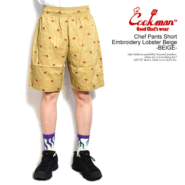 COOKMAN クックマン Chef Pants Short Embroidery Lobster Beige -BEIGE- メンズ ショートパンツ シェフパンツ atfpts