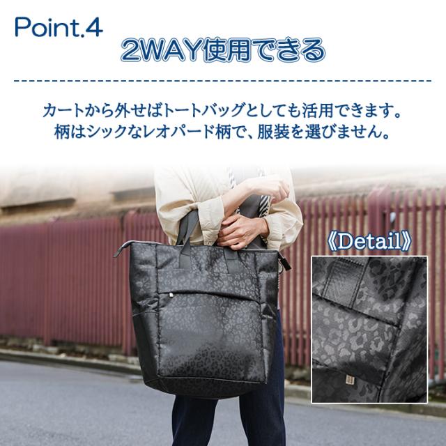 COCORO ココロ ショッピングカート レオパード Leopard 4輪カート 18L 折りたたみ 軽量 コンパクト 2WAY 高さ調整 ストッパー ダブルキャスター トートバッグ エコバッグ カート 買い物 ショッピングキャリー 買い物カート お買い物カート キャスター