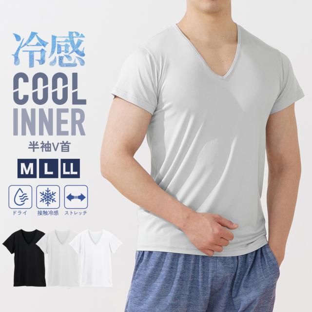 接触冷感 ベア天半袖Vネック インナー メンズ 春夏 夏用 半袖 ひんやり 男性 肌着 紳士 下着 ラウンドネック 25SS L1281L-E