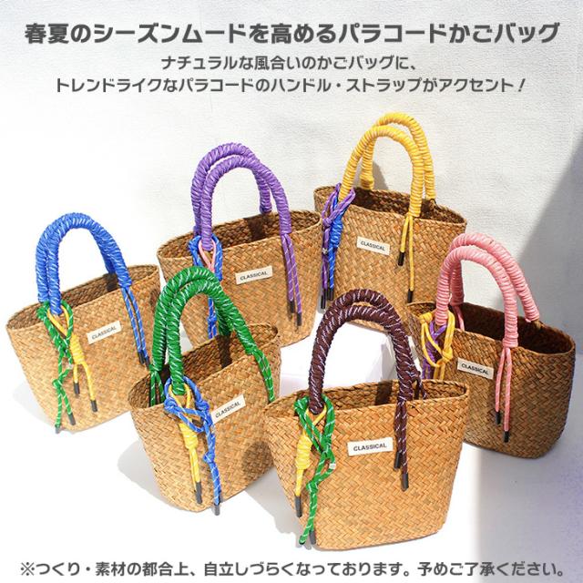 新作 ストラップ付きカラフルパラコードハンドルかごバッグ レディース かごバッグ カゴバッグ バケツ型 ペーパー ストロー ハンドバッグ トートバッグ 小さめ 軽量 チャーム おしゃれ 春夏 夏 浴衣 ピクニック