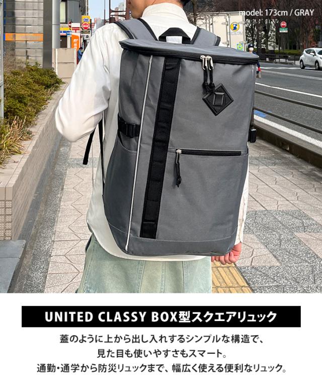 新作 UNITED CLASSY スクエアリュック BOX型 28L メンズ リュック 大容量 大きめ おしゃれ デイパック リュックサック 通勤 通学 旅行 防災 A3 A4 マチ広 スクールリュック シンプル