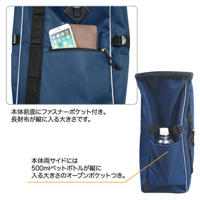 両サイドのポケットには、ペットボトルや折りたたみ傘を収納可能。