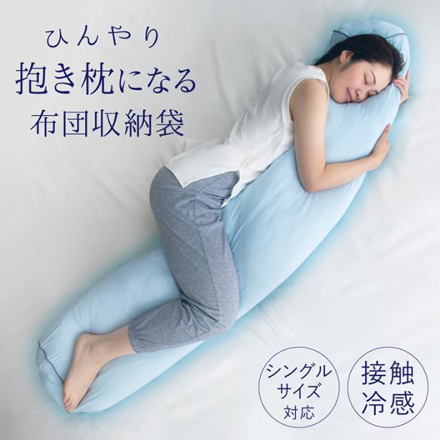 新作 シングルサイズ対応!接触冷感抱き枕になる布団収納袋 布団 収納 カバー だきまくら ひんやり 涼しい 涼感 冷たい 暑さ対策 熱中症 節電 エコ 対策グッズ 洗える 夏 大きい 掛け布団 収納ケース 140cm