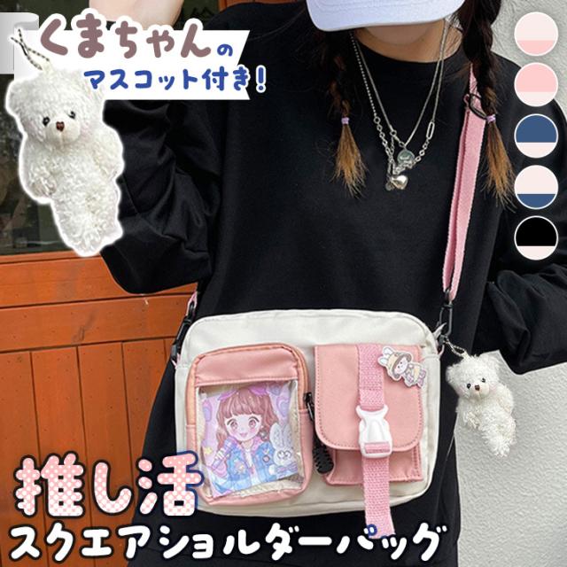 新作 クリアフロントポケット横型スクエアショルダーバッグ レディース クリアバッグ ショルダーバッグ 斜めがけ 肩掛け キーホルダー チャーム付き 透明 おしゃれ 推し活 オタ活 痛バッグ ぬい トレカ 缶バッジ