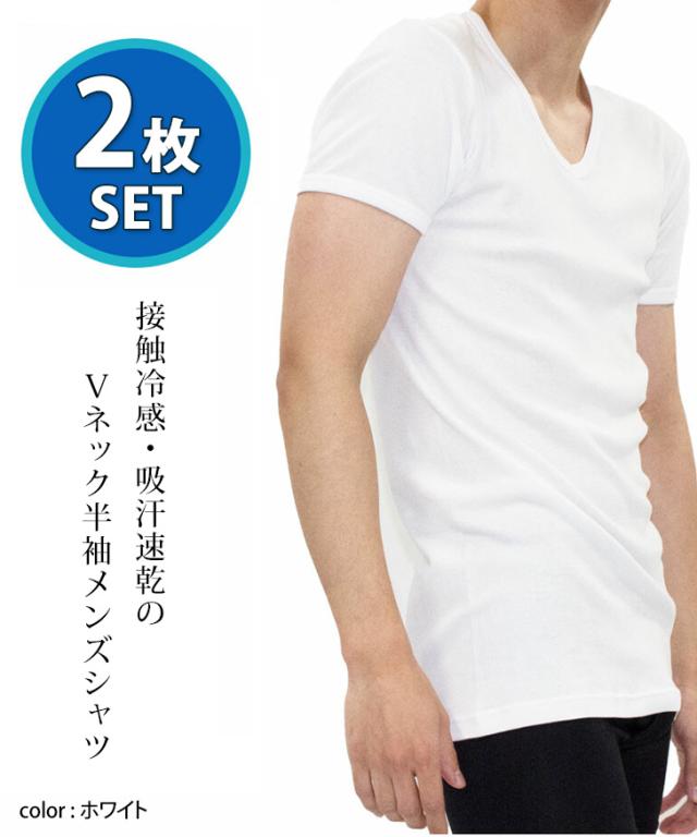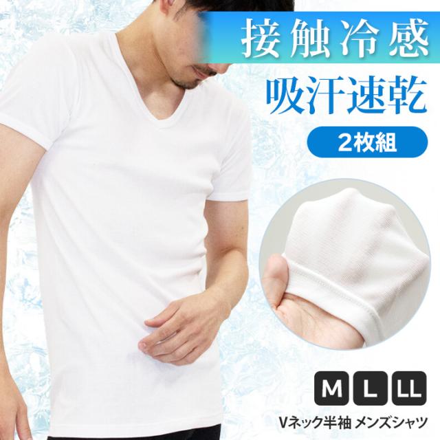 接触冷感・吸汗速乾のVネック半袖メンズシャツ(2枚組)