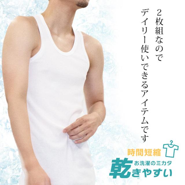 新作 接触冷感!吸汗速乾フライス編ランニングメンズシャツ2枚組 インナー トップス ノースリーブ タンクトップ 肌着 下着 男性 紳士 薄手 夏 ドライ 通気性 涼しい インナーシャツ ストレッチ 無地 デイリー